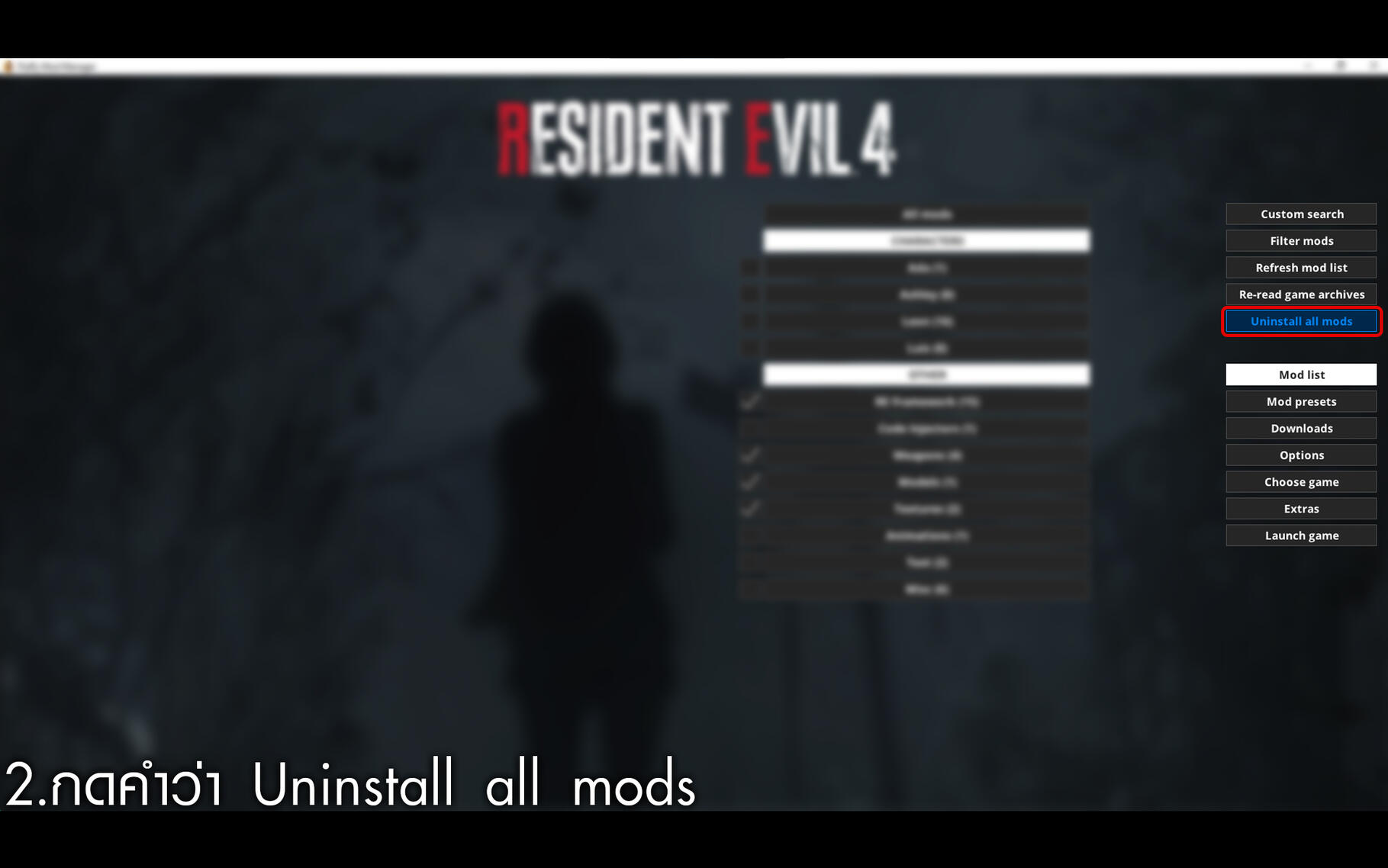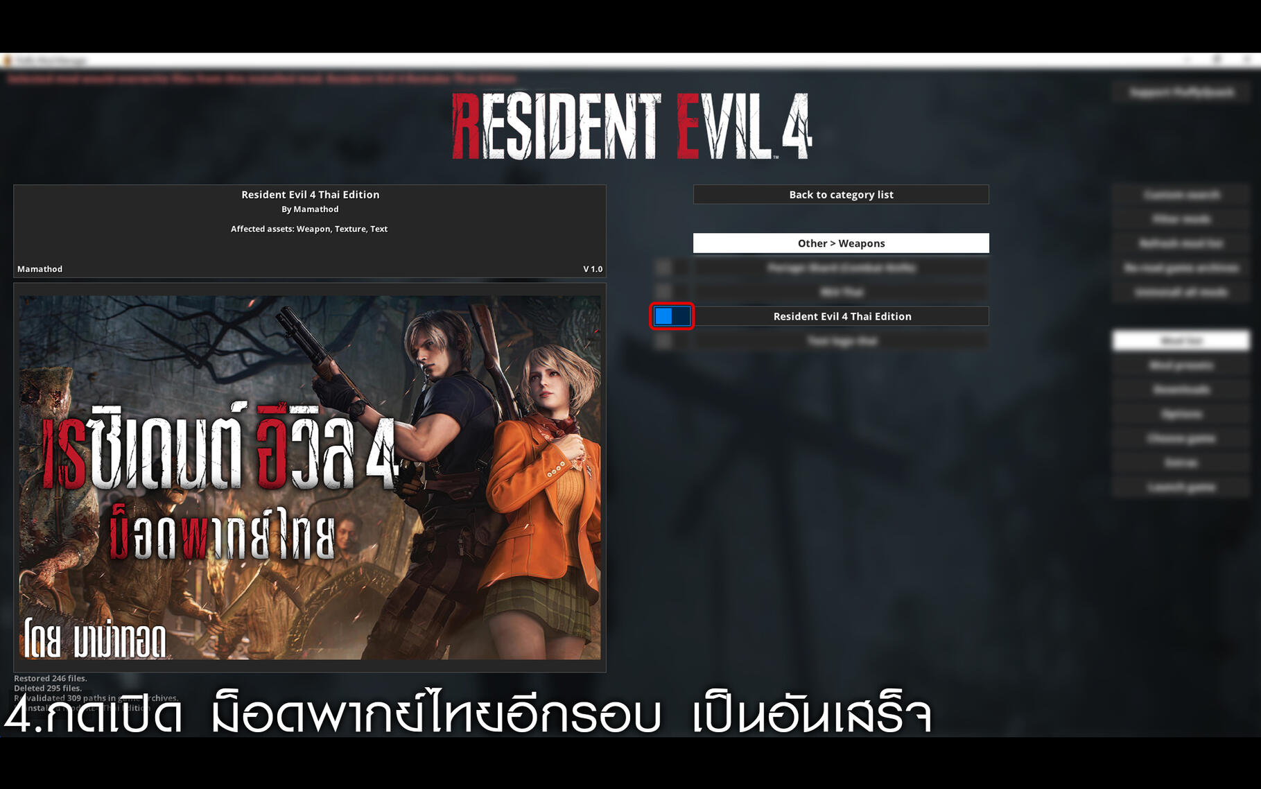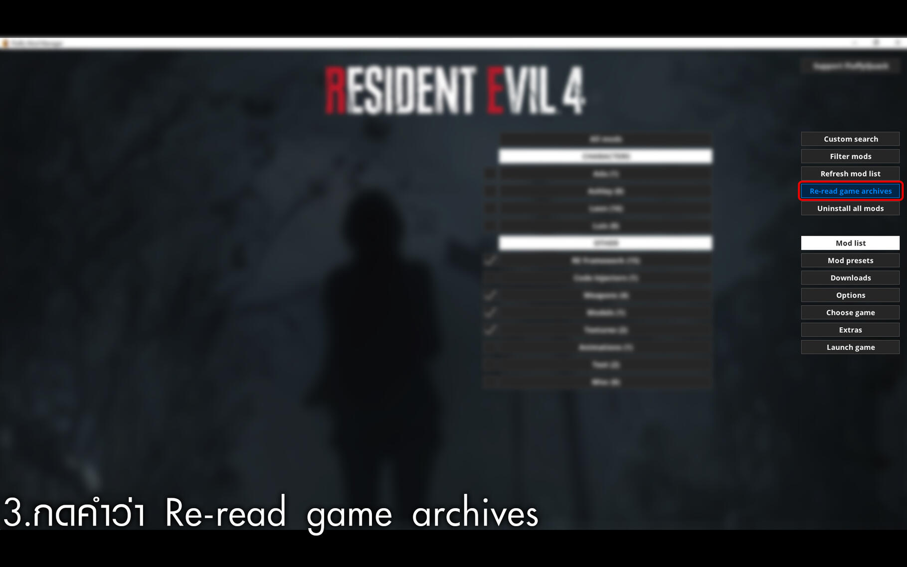 5. เอาไฟล์ม็อดไปวางไว้ในโฟลเดอร์ ตามนี้ \Games\RE4\mods