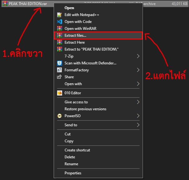 1.กดแตกไฟล์ PEAK THAI EDITION.rar แบบนี้
