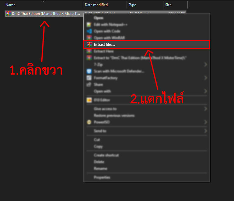 1.กดแตกไฟล์ DmC Thai Edition (MamaThod X MisterTime).rar แบบนี้