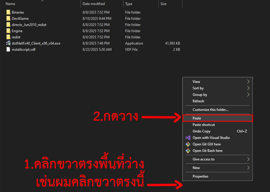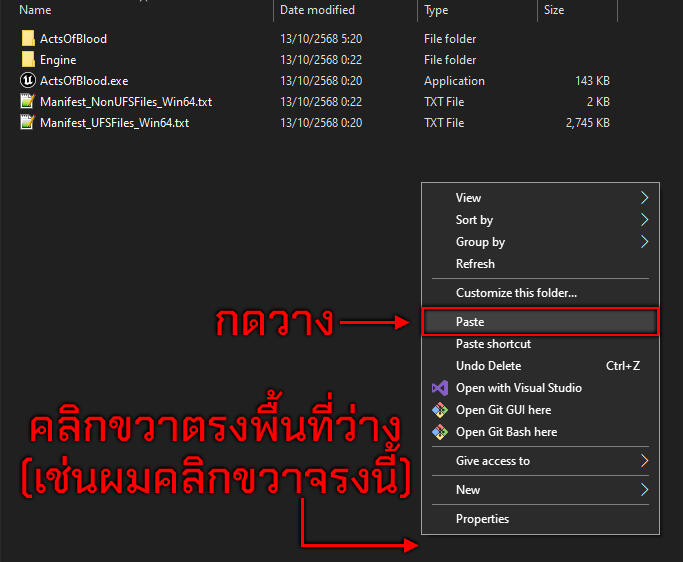 5. กดคลิกขวาแล้ว วาง(Paste) โฟลเดอร์ที่เราคัดลอกมา