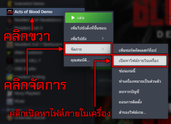 3.กดเข้ามาจะเจอโฟลเดอร์ ActsOfBlood ให้ทำการ คัดลอก(Copy)